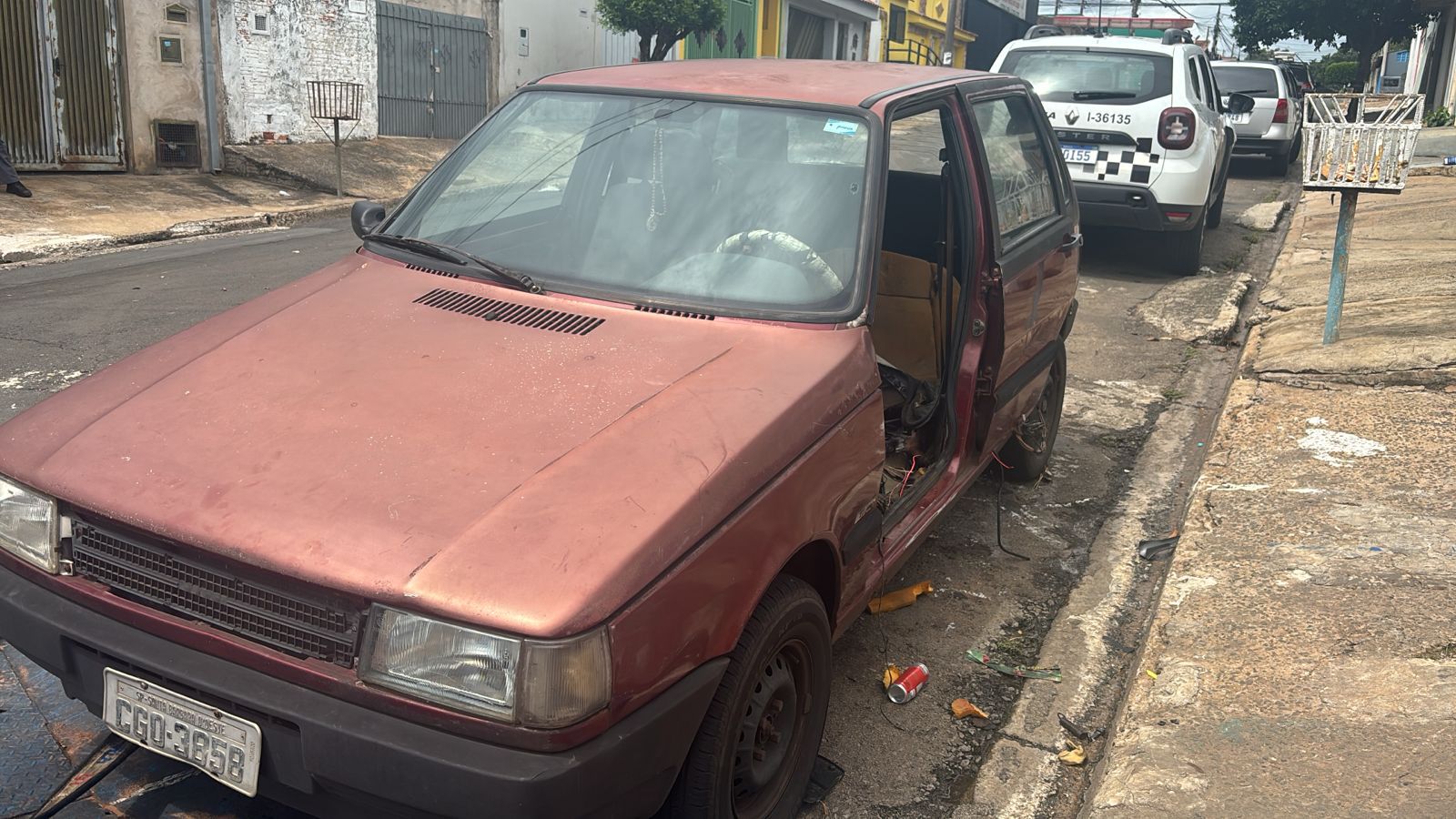 Carro estava sem portas e peças encontradas em residência não tinham procedência comprovada; perícia foi acionada Um homem foi preso
